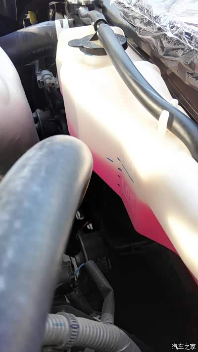 漏的更加明显了,粉红色结晶。两个月跑两千多公里就会消耗0.5L冷却液。