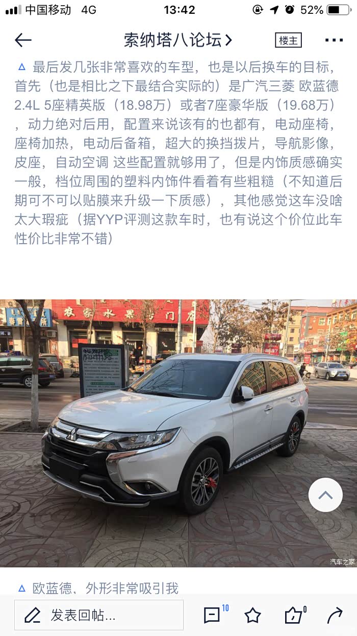 17年发的帖 当时提到过 换车考虑过欧蓝德 默默的关注了两年了 终于提了