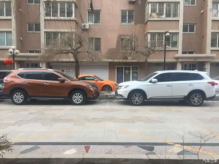 日产奇骏 也是选车时考虑的车 小区内正好俩车停一块了 停下脚步 留了张照片 感觉奇骏更高大 欧蓝德更修长