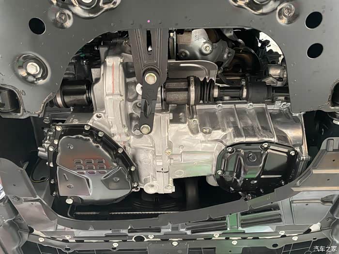 发动机变速箱部位带有一个防尘降噪的装饰板。
