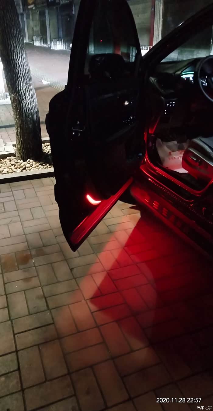加装皓影开门灯,接在开门后车前车后顶上阅读灯自亮的小白灯控制线上。本来接在开门后自动大灯打开上的,开门车前车后灯亮,我电脑设置15秒关闭,所以换接开门阅读灯亮线上。1米LED防水胶灯带,拼多多14元,安装在门下漆面贴着橡胶条边暗装,很隐蔽。先装了驾驶门,马上在装另3门。