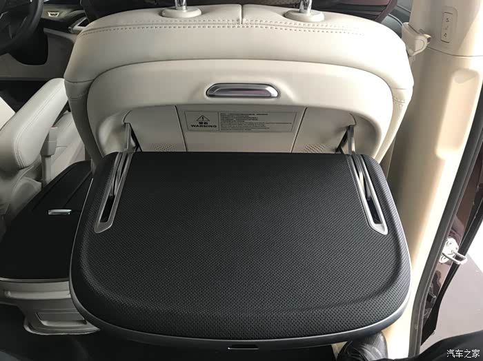 前排两个座椅后方的小桌板设计也是大大提高的工作的便利性,作为一款商务车型,在车上办公的次数也绝对不会少的,同时这款小桌板的最大承受重量也有30公斤,所以说是非常的方便。