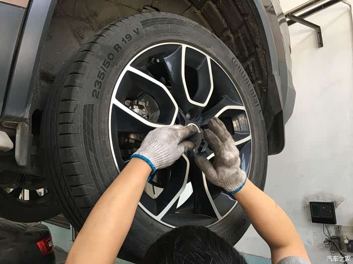 给轮胎充气,检查轮胎磨损情况,刹车片的磨损情况,维修小哥做的很细致。