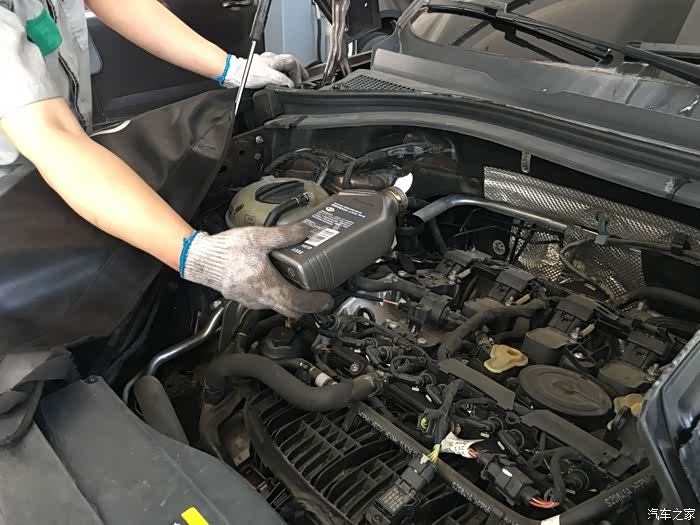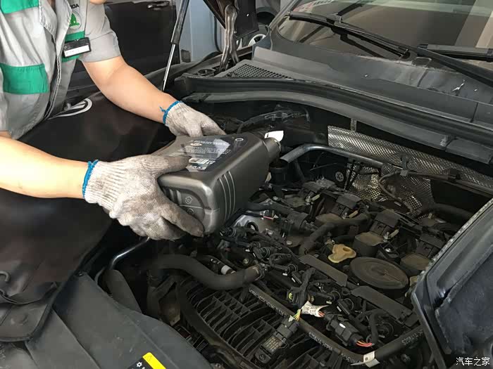 加机油,大瓶加完换小瓶~~~~~加5.5L左右还留半小桶放后备箱。