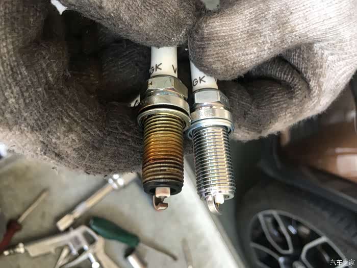 新旧火花塞对比,同样看不懂。