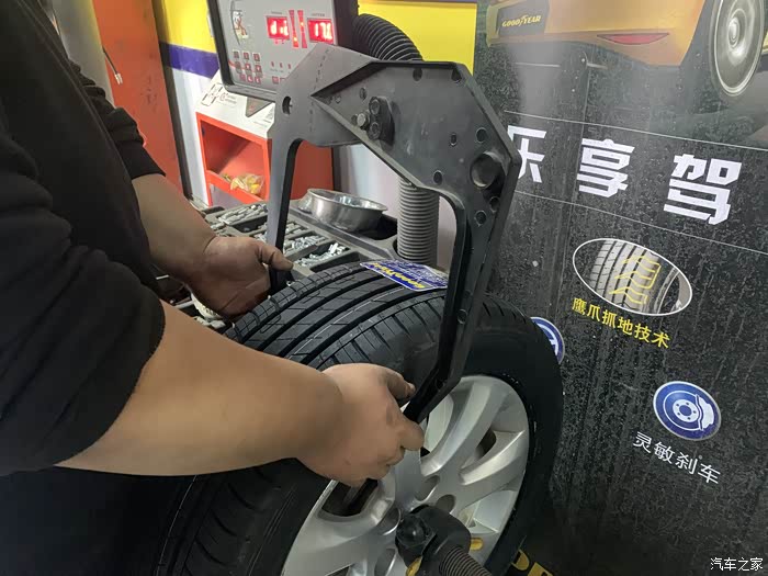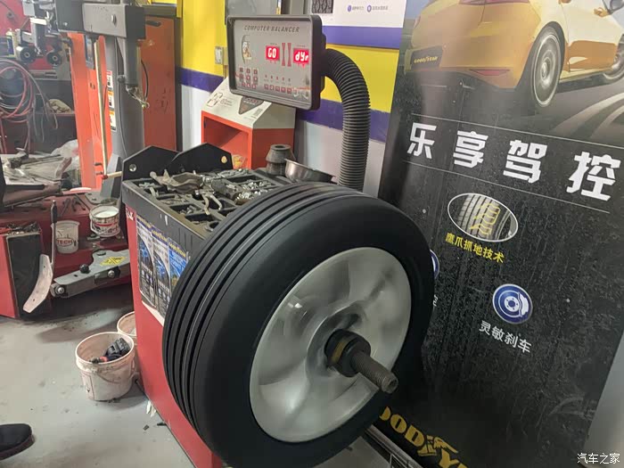 固特异轮胎店面,与上次换胎体验的店面是同一家,只是换了租用的底商,而且比以前的店面大了,工位也多了,在店长的精心管理下,工具和门店物品依然是那么的整齐。