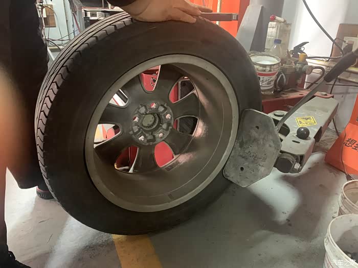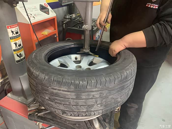 新轮胎更换完毕,师傅一个人整个工作进程熟练,只用了1个小时不到