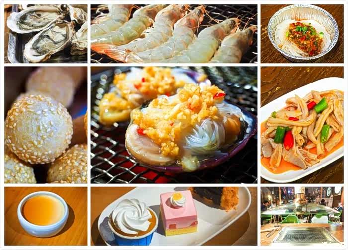 走进蚝英雄店内,一排排西餐火盆烧烤式的烤肉架上,静候着一盘盘肉肉的光顾。在取菜区域,可以挑选扇贝、生蚝、虾、海螺、五花肉、脑花儿、鸭肠等肉类菜品。更有丰富的小吃,焦糖豆花、蒸饺、醪糟小汤圆、抹茶蛋糕等。菜品区域十分丰富,根据自己的食量自行取拿。