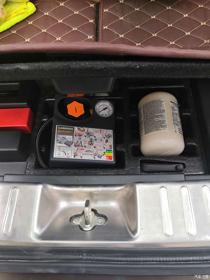 充气泵和补胎液在后备箱隔板下