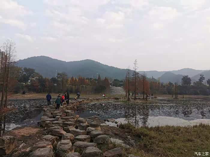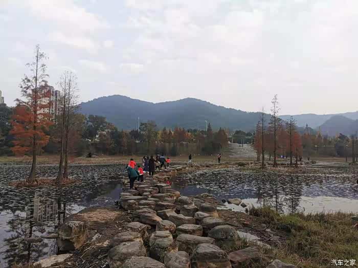 冬天湖里面的水少了很多,很多家长领着小朋友抄近道,从这个景区的石子路穿过湖面。如果是夏天,很少有人从上面走,因为湖面水深,万一掉下去,后果还是蛮严重的。