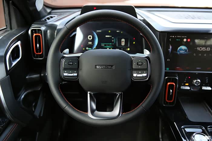 三辐式多功能方向盘、旋钮式换挡、以及菱形纹路的皮质座椅让大狗的内饰质感看起来相当不错。