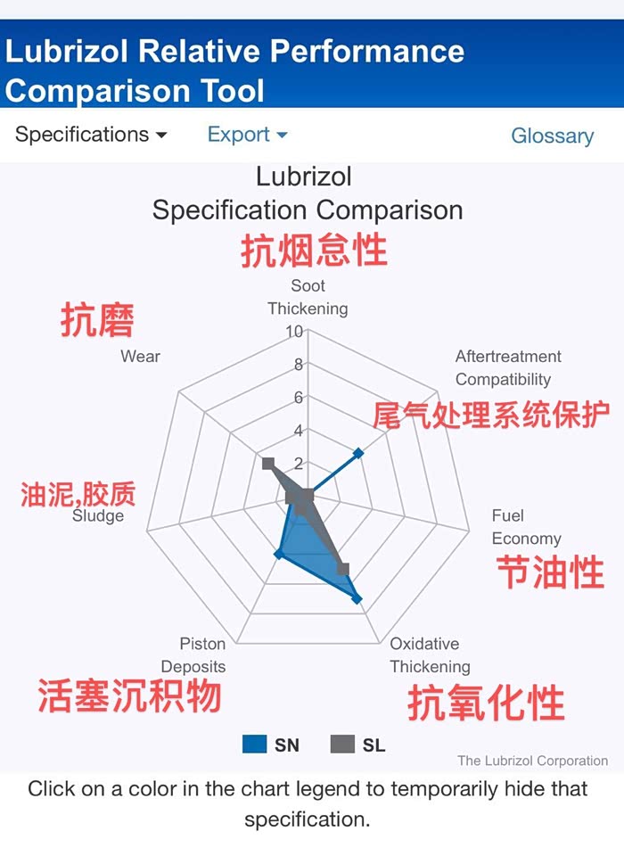 API SL认证的主要性能表现(灰色)非常的差,SN的尾气处理系统保护性更好一点,SN PLUS跟SN一样,只是多了一个LSPI防护