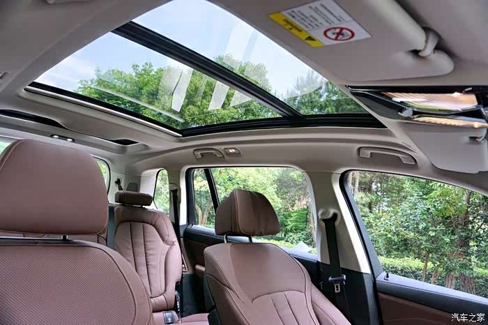 X7为第三排座椅上方单独开了一个小天窗,虽不能打开,但是视野一下就好了