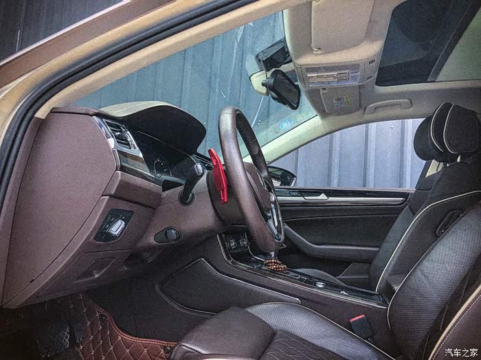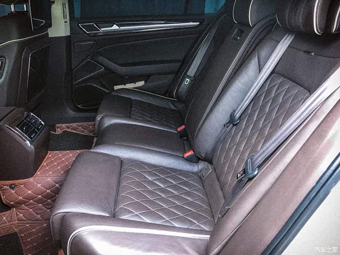 仪表台中部的表盘不是什么豪华的钟表品牌,但是足以显示这台车的主人不是你想象中的小孩子。各种模式选择的按键分布在档位附近的面板上,还有各种功能按键。档把的造型比较豪气,感觉是一切尽在掌握。仪表台也是经典的大众设计,中间是液晶的电子显示,颜色搭配也很耐看。整个前排的中控板的材料质感以及纹理搭配后,辉昂确实是在大众品牌中最高的配置了。座椅也是比较值得一提的,全车所有的座椅都使用的是相同的工艺,拥有三档可调节的按摩、通风、加热功能。前后排还都配备了航空头枕,座椅包裹性和舒适性都很可以,搭配上舒服的头枕,在车内休息也是相当奈斯了。空间方面就更不用说了,足够的车长分配了宽裕的后排空间。