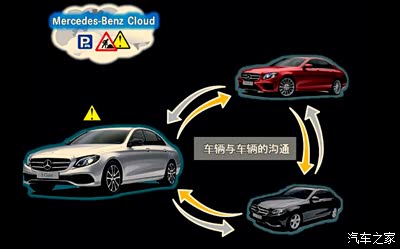 Car2X 智能云端交互系统,在行驶过程中,全新长轴距E级车可通过云端与其它车辆远距离实时交流信息,及时有效地提示驾驶者前方存在的交通状况或障碍。