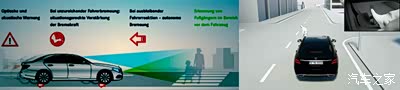 带横向探测行人车辆探测功能的主动式制动辅助系统 (Active Braking Assist with cross-traffic function)还可以探测到横穿而过的车辆和行人,并自主制动帮助避免事故发生。当车辆探测到前部或横向行人,判断有碰撞风险时,首先会以声、光警报,然后主动建立制动压力,确保驾驶员踩下制动踏板时,得到最大制动力,如果驾驶员没有反应,车辆将自主制动。
