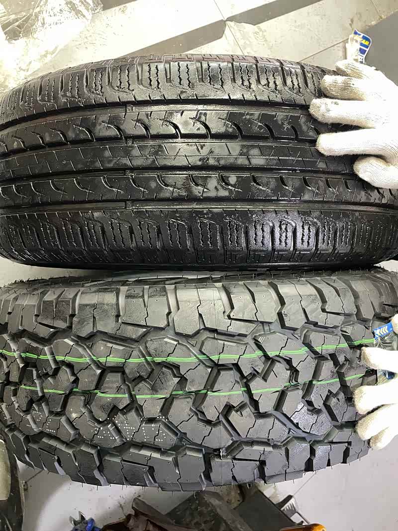 先说说和原车固特异轮胎的对比。在行驶过程中,能明显感觉到轮胎噪音增加了一些。不过我觉得还在能承受的范围之内,不影响正常驾驶和车内交流 。毕竟是AT胎,在非铺装路面上的表现肯定比普通公路胎强,这点噪音的增加也算能接受。