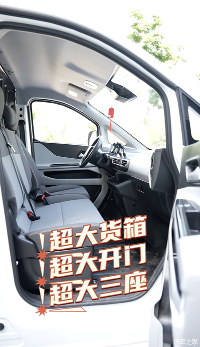 实测数据显示,多拉大面货厢容积达7.8m?,内部长宽高分别为3090×1710×1500mm,额定载重1475kg,像家电、家具、建材等大件重货都能轻松容纳。其单侧侧滑门宽度达1200mm,配合270°对开尾门,即便在老旧小区、狭窄仓库等场景也能高效装卸,500mm的低地台还能减少搬货体力消耗。