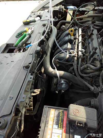 至于下面,我拿掉了空滤前的谐振箱和空滤至节气门之间的导气管。然后将流出来的化清剂直接送入到节气门。