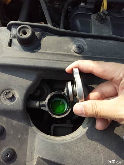 不放心,不顾安全警示,虽然是热车,有80多度的温度,伸手打开这个盖子看看,够绿,虽然时间比较长,没问题,PASS
