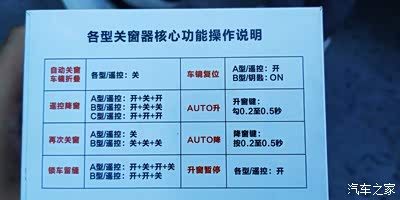 匹配完钥匙,又加了个一键升窗。就是解锁降窗,锁车升窗。其实有点后悔了,这个跟某宝的没法比,老板还收了我350。这个只能升降窗,不能折叠后视镜。还破了我一条线。算了,无所谓了。自从车被擦了一次后,也不怎么心疼了。