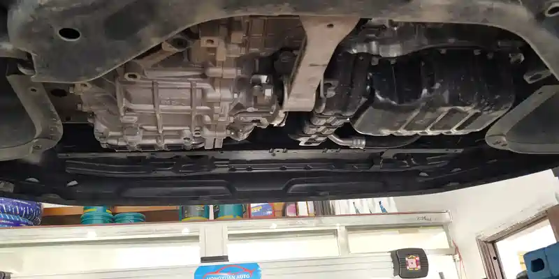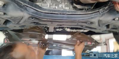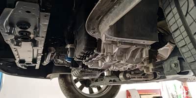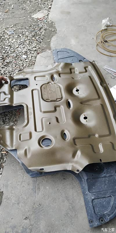找准位置,开始安装了。由于在帮忙,拍的有点模糊,见谅。后面也没顾得上拍照了。装完之后估计是护板离油底壳太近了,车一打响就嘣嘣嘣的直响。师傅又把车升起来,把护板掰了掰,再打响就没事了。旧的塑料板就扔老板那了。那么大也不好带。要了也没啥用。