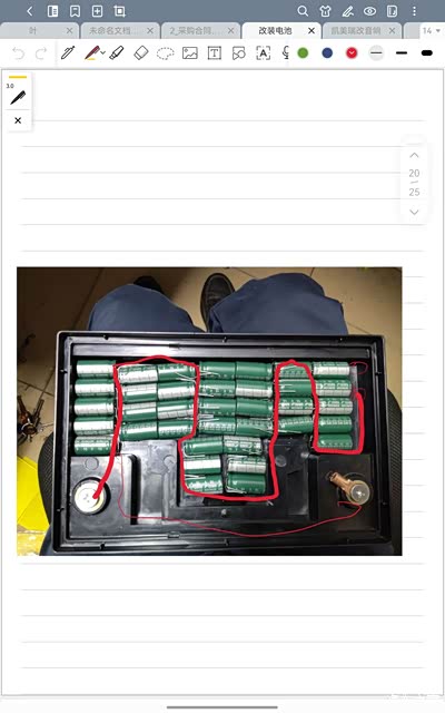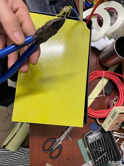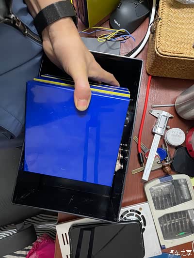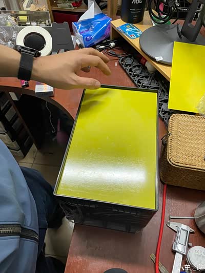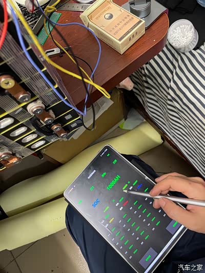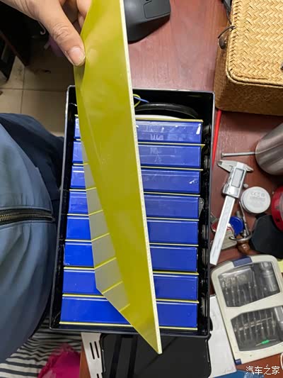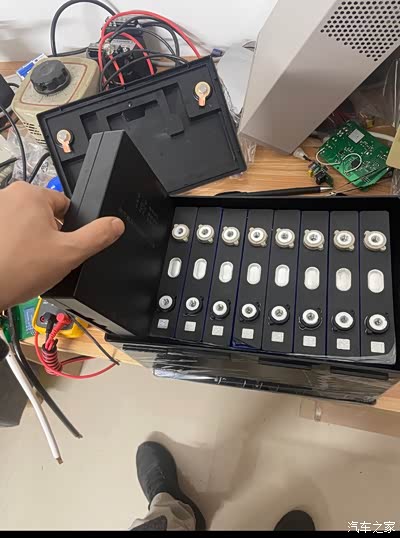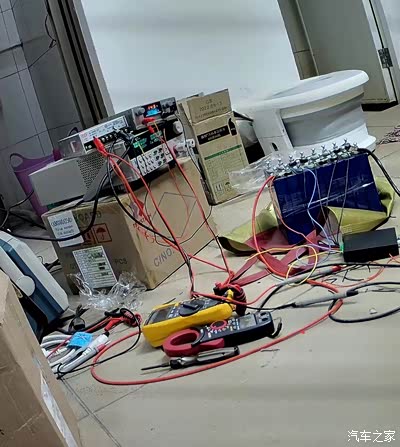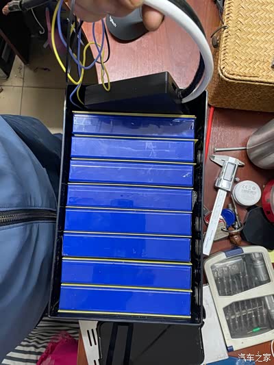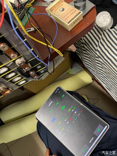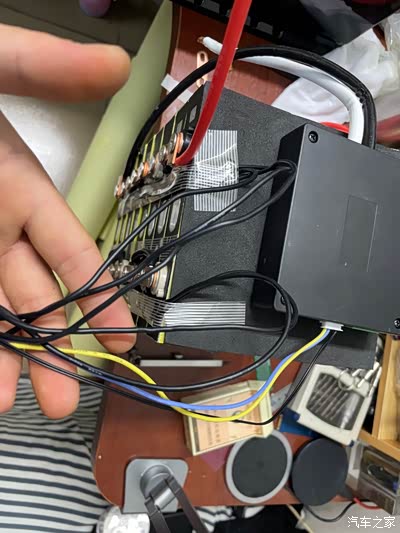 又搬下来进行测试和组装,前面是试装,要把电池的这几根线序测出来