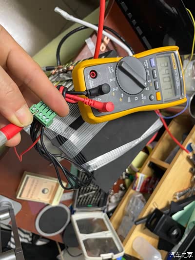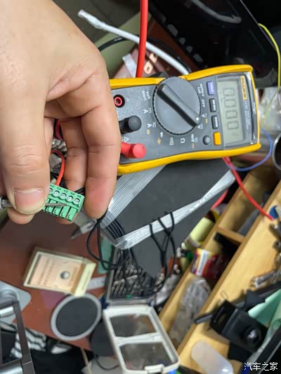 第二次电池没电是晚上了,实在不想拆那老拖拉机的电瓶了,加上拆的霹雳哐啷响又怕被老婆骂,直接用以前老爹充电鱼机电瓶充电器+我以前DIY做的一个DC-DC可调小电源一起充了有一个小时,大概电流是6A左右,终于可以打着车了。