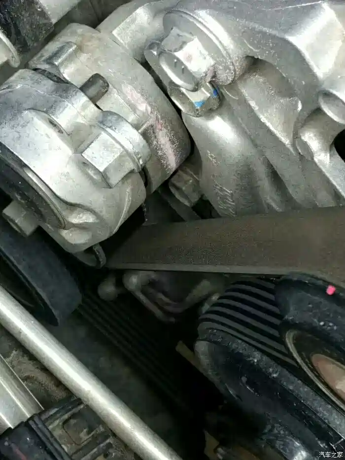 这个是论坛车友水泵渗漏防冻液到涨紧轮表面的照片。