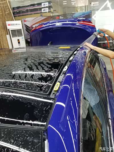 提车的时候就叮嘱过销售,不要洗车,因为日系车的漆水很薄,脏的时候用手使劲搓一下都会磨花,更别说4S的自动洗车机和他们的擦车技术了,一张帕子从车的外表擦到内饰,我开玩笑的给洗车工说的,这叫“一布走天下”。所以提车的时候有点脏,但不要紧了,提车后就直奔上户的地方,牌照是手机上就选好了,所以半天时间就搞定了,距离一个星期的临牌都还有6天才会失效。之所以提车就去上户,是因为担心贴了车衣,车管所那里怕有限制,怕麻烦,所以裸车去的,拿到牌照后,脏车就直奔贴膜店,进行透明车衣贴膜。我选的进口车衣,不是顶级的,但是对于我来说,够了,性价比高,全车贴下来不到一万。有一万多和两万多的那种,超预算了。贴膜的原因是以为蓝色车身,没有白色和银色耐脏,所以会经常洗车,只要用车,我4天左右就洗一回车,车洗多了,太阳纹和细小的划痕就很多,我上个黑车就是,远看无所谓,但是一走进,光线好的地方,就会发现是花的。选的透明膜,是因为本来车身外观就是蓝色,没必要改色了,等几年这个色看厌烦了,就去贴个改色膜,现在的改色膜技术也提高了,有那种防刮,带自我修复的改色膜,而且看起和做漆是一样的,远看区别不出是不是贴了膜。现在跑了一万公里,洗了几十回车,感觉还不错。另外,透明车衣还是需要保养,就是打蜡,作用是去污和驱水,也耐脏一点。我一个半月打一次蜡,3M蜡,我自己打,每次两个小时左右。以前的黑车也是两个月打一次蜡,每次远看都像新车,但是细看,打蜡太频繁漆面也是花的。