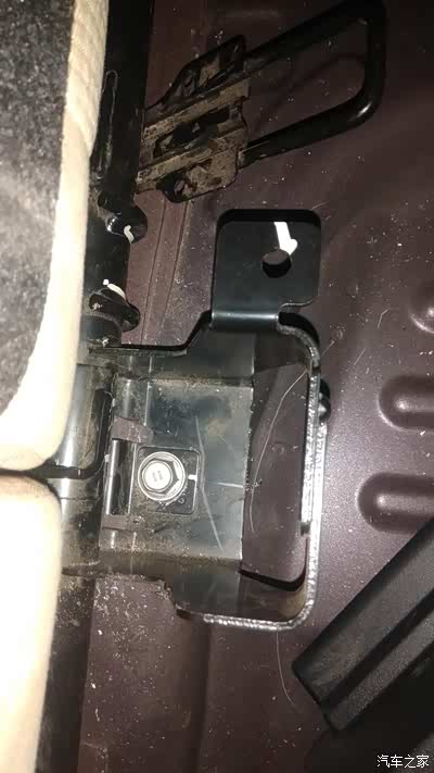 安靠背锁的地方有预留孔,没有螺丝,真扯淡,丰田,多焊接个螺丝帽会死啊