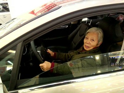奶奶坐上自家车上感觉很满足。(后来发现这张是在标志上拍的,但奶奶笑得开心,就用这张吧,不换了)