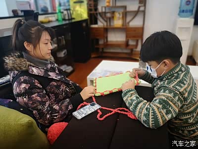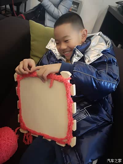 亲子动手,大人孩子齐上阵,进行围巾编织的学习。另外就是要说一下,这个围巾编织方法真的很好,最后的成品,既可以当围脖还可以当长围巾,还能当帽子。老少都可学习,比毛衣针容易太多了,大家家里有这个地垫板的都可以操作。成品很完美。