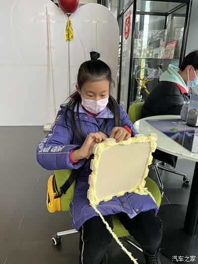 小朋友完成了编织之后高兴的演示围脖的佩戴方法,是不是超级漂亮。还特别暖和。因为编织一条成品围巾的工作量还是很大的,很多小车友手都磨红了,但是大家不气馁,坚持到最后,活动从下午2点一直到晚上6点才结束,大家都没有轻言放弃,用自己的双手为需要的小朋友奉献爱心。