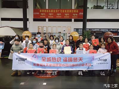 经常上论坛发帖,因为和车友们一起玩的确实太开心,想记录一下,看到车友们的留言鼓励,说我的文章很好,看到了Jeeper们的热爱生活,团结、和一颗爱Jeep爱越野的心。两月多月没写文章的我,一下子觉得受到了鼓舞,好的活动就是要记录下来,本次不是越野活动,而是Jeep车友的公益活动。我觉得也是特别的有意义。大家都带着小Jeeper一起参与,付出爱、感受爱。这是个系列活动,我们完成爱心围巾的编织,之后又去了莱西的店埠镇,在当地政府人员的带领下走进10户困难,送关爱。特别有意义,希望大家都可以参与公益,让大家看到我们Jeeper的力量。这是我们第一场活动后,在展厅小Jeeper的合影。