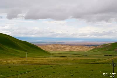我的朋友中,很多是去过沙漠的,这当中还有很多人,对沙漠是相当熟悉,但像这种一座山隔开碧草和黄沙的真不多,山上还覆盖着青草,而那沙子就好像撒上去的粉面子。