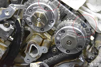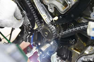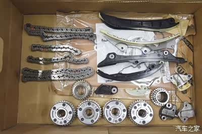 打开发动机正时壳 发现链条拉长 链条导轨磨损过度