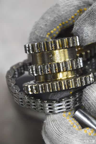 凸轮轴齿轮和链条安装注意 链条黑色标记要对准卡槽位置