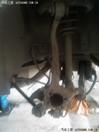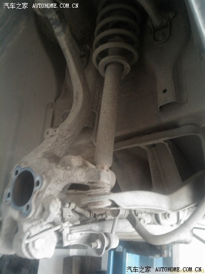 4、将组装好的刹车盘组建固定到轴承座上,操作异常困难,主要是悬挂复杂,4个螺栓是从里向外固定的,工具不好施展;这是左后悬挂,真复杂:
