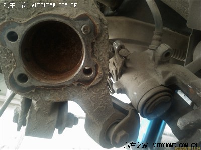 原来是刹车分泵固定支架上的2个固定刹车分泵的活塞(它的作用是使刹车片沿着刹车盘轴线夹紧或松开,并保证间隙一致),但其中有一个锈死,所以每次刹车时,活塞压进,松开刹车,活塞不回弹,造成内片一直接触刹车盘,所以轮胎转动不灵活,油耗增加,直至片体全部磨掉。