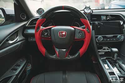 完美主义者会觉得原车方向盘没有质感,所以他特意定制手工碳纤维加真皮方向盘。
