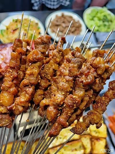 就喜欢这滋滋冒油,并夹杂着芝麻香气的肉串儿。不说了,我去替你们品尝了