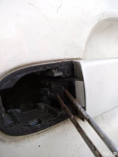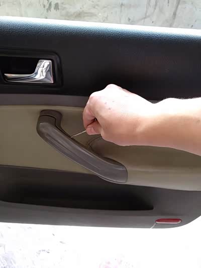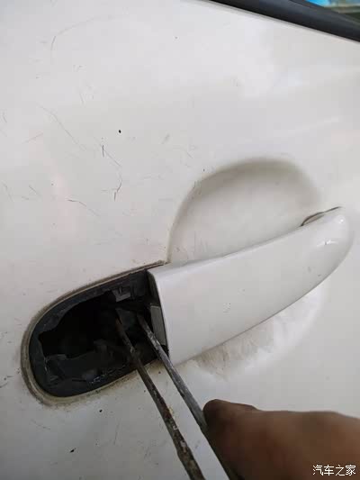 用小一字批在车门内把手的合起来的逢隙分几段撬起