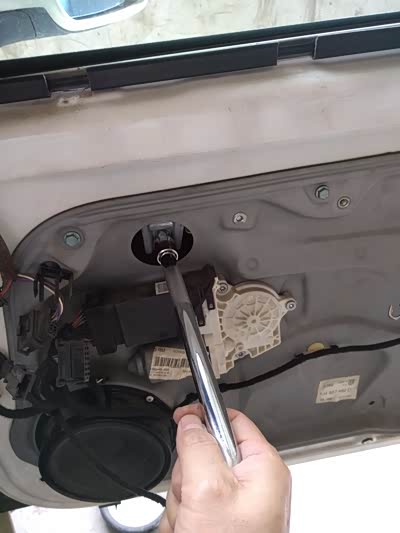 把窗玻璃放下,收紧夹玻璃的锣丝,接回原来拆开的连丝接头,固定好电线