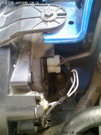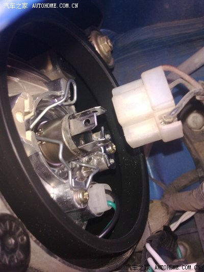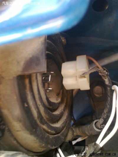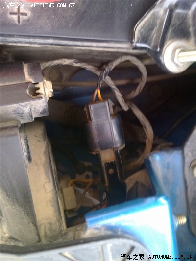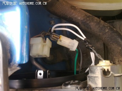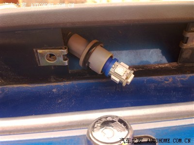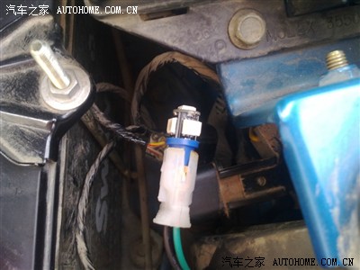将大灯旁边的绿黑色的插头拔出,那就是示宽灯的了,我左边的没有拍,因为左边已经很简单了,主要右边多了一个报警器的喇叭线路,先把报警器的喇叭线拔掉,好施工,害怕改装过程中出现一些损坏