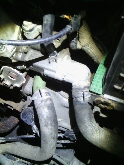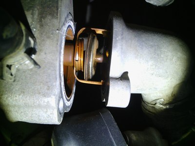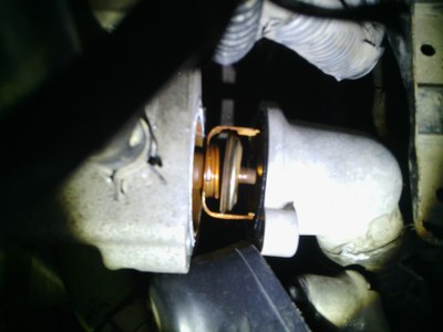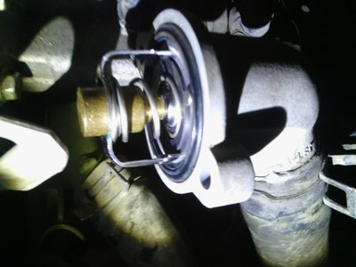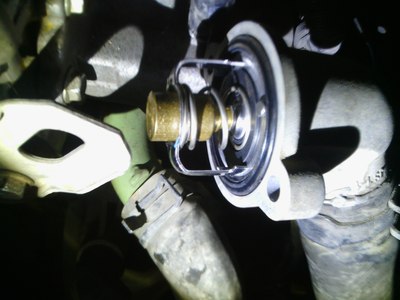 打开节温器底座,节温器最大开度。可能是上次高温搞坏掉,只是天气热,没有发觉。