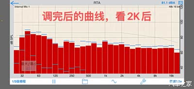 调节完均衡器后的RTA曲线,2K后基本平直。