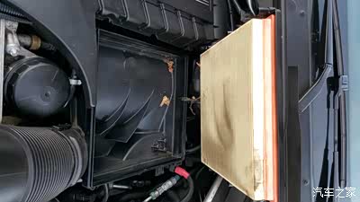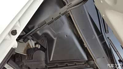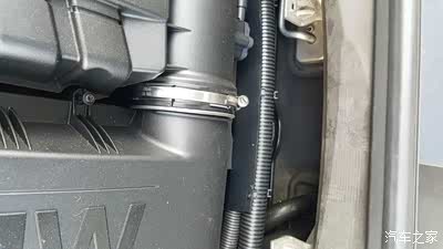 但是要注意下图这个地方扎环螺丝要松开,否则盖子也是打不开的,不用完全拆开,松开就行。然后打开盖子就看见发动机进气滤网了