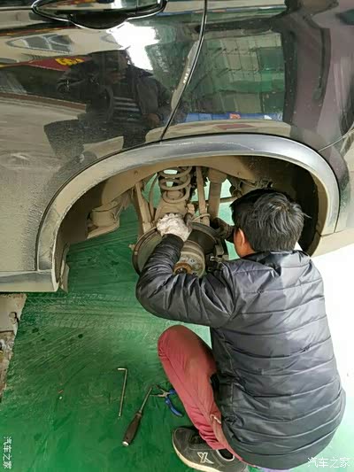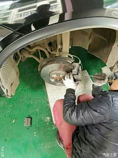 后轮开始施工了,师傅说后轮要慢一点,因为电子手刹要拆个什么东西还是要进行车电脑关什么东西的,我也没听懂,但实际上也就二十分钟不到就搞定了