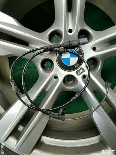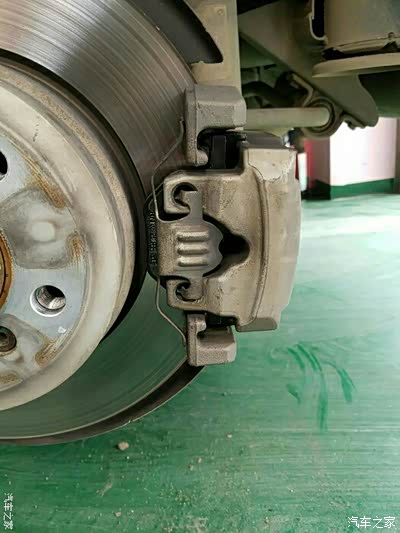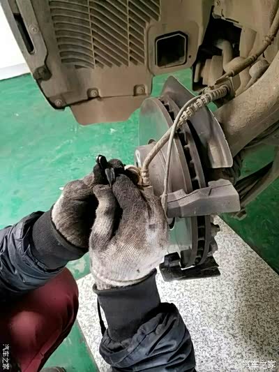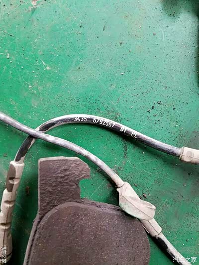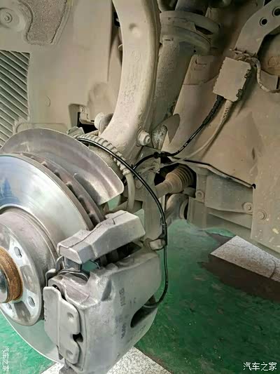 不一会儿功夫,右前刹车片已经搞定了,由于左右都是一样的,所以,左前我就拍了一点换感应线的照片,前后感应线都在左轮上。
